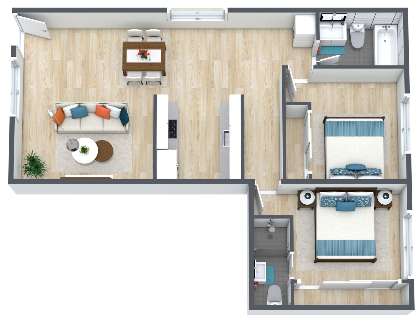 - Wood-style flooring