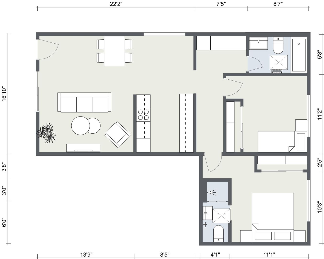 - Custom shaker-style cabinets