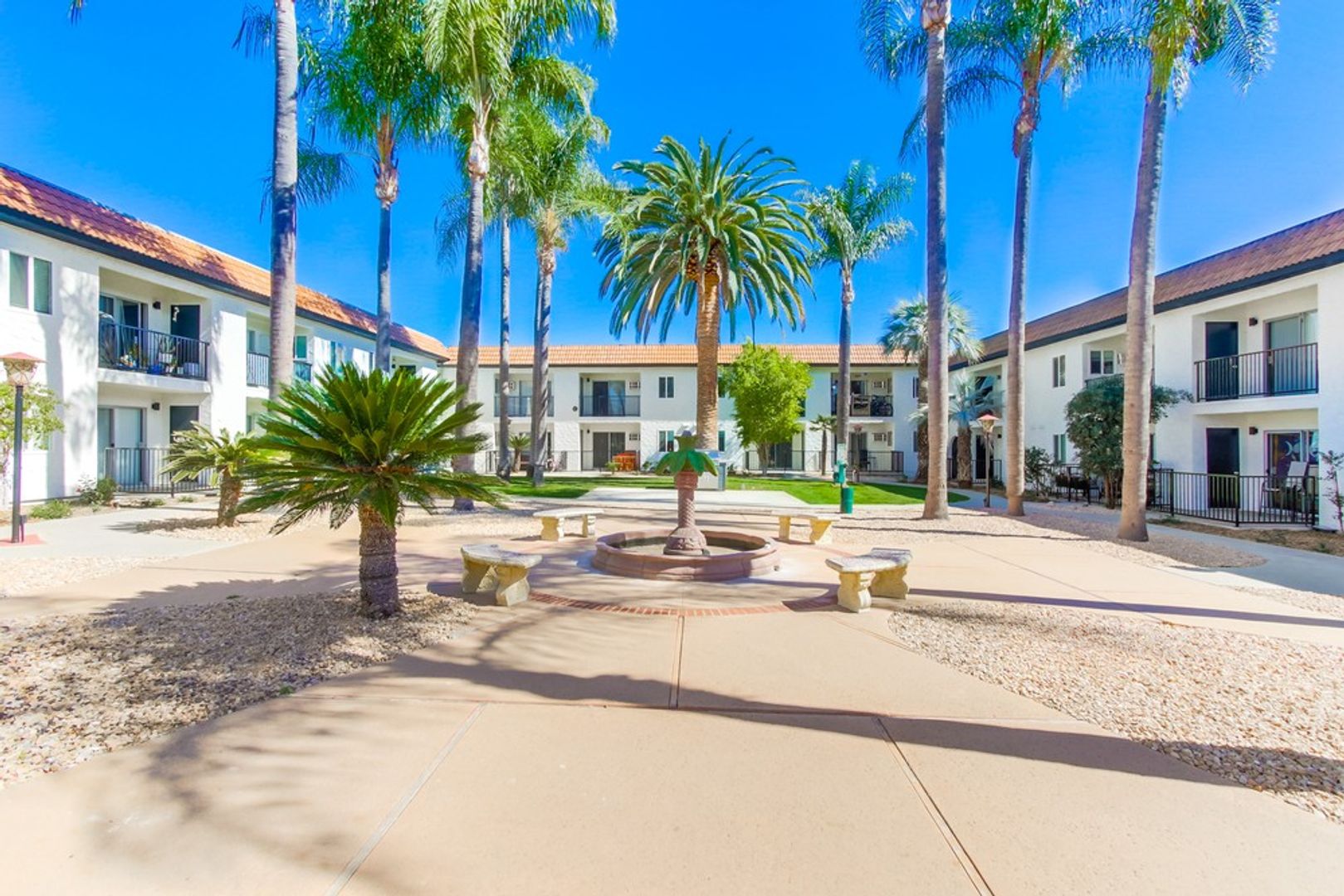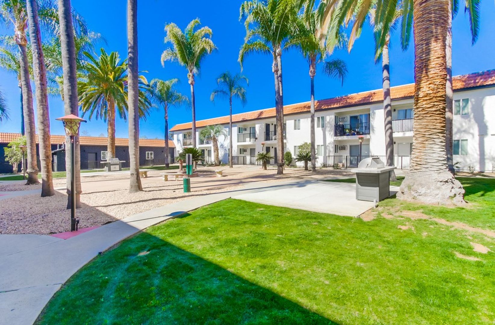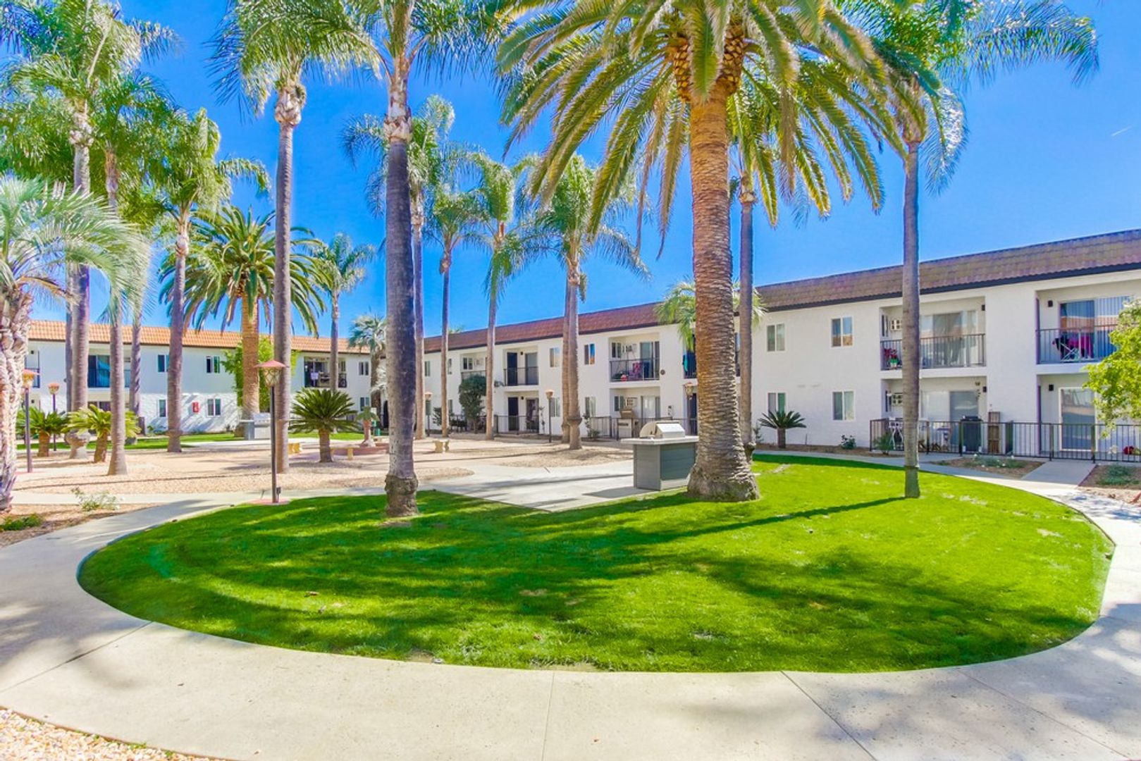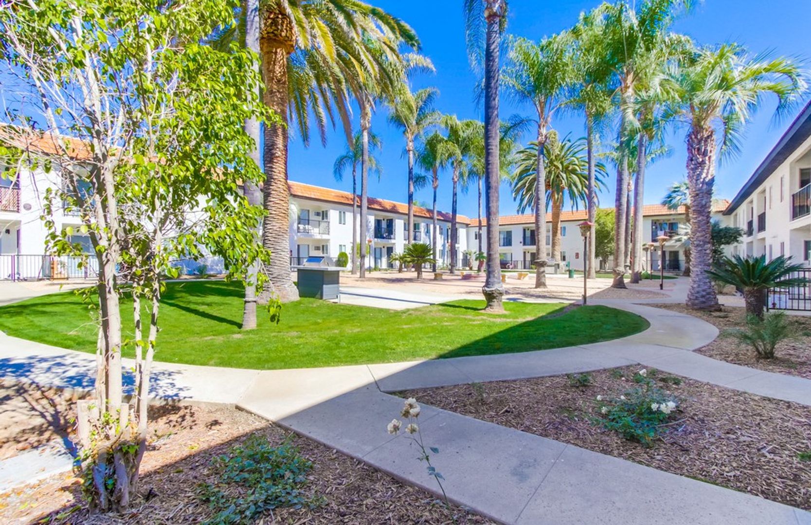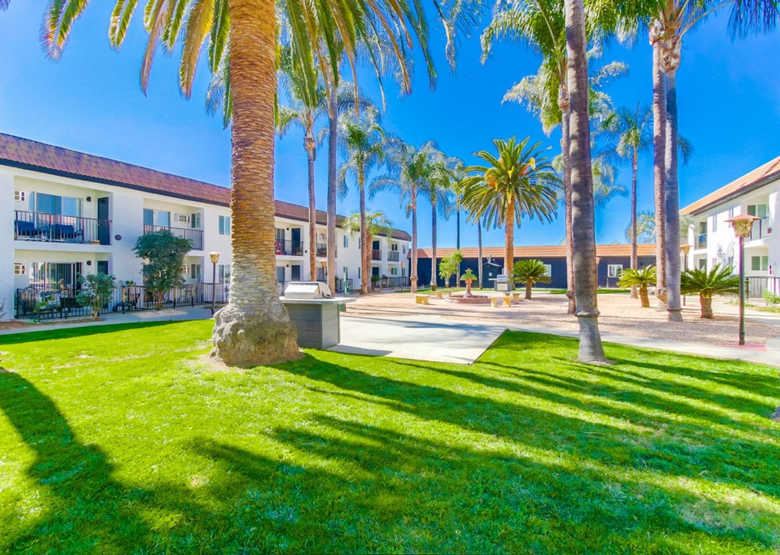 - Community area with beautiful palm trees