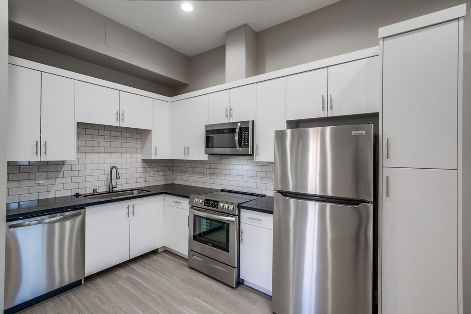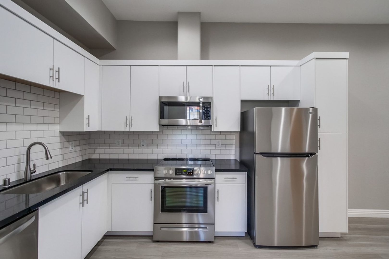 - Stainless steel appliances including microwave
