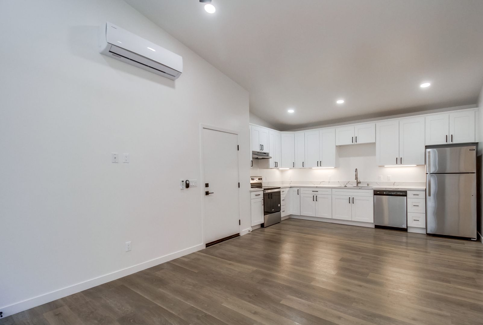 - Stainless steel appliances including dishwasher and microwave