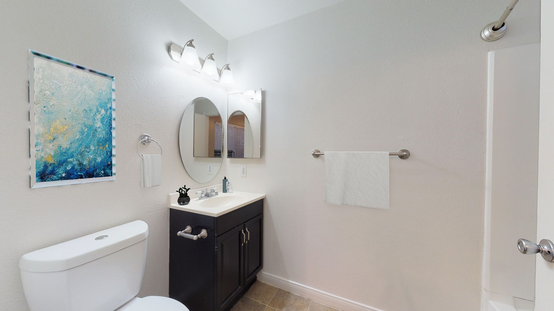 - Brushed nickel fixtures