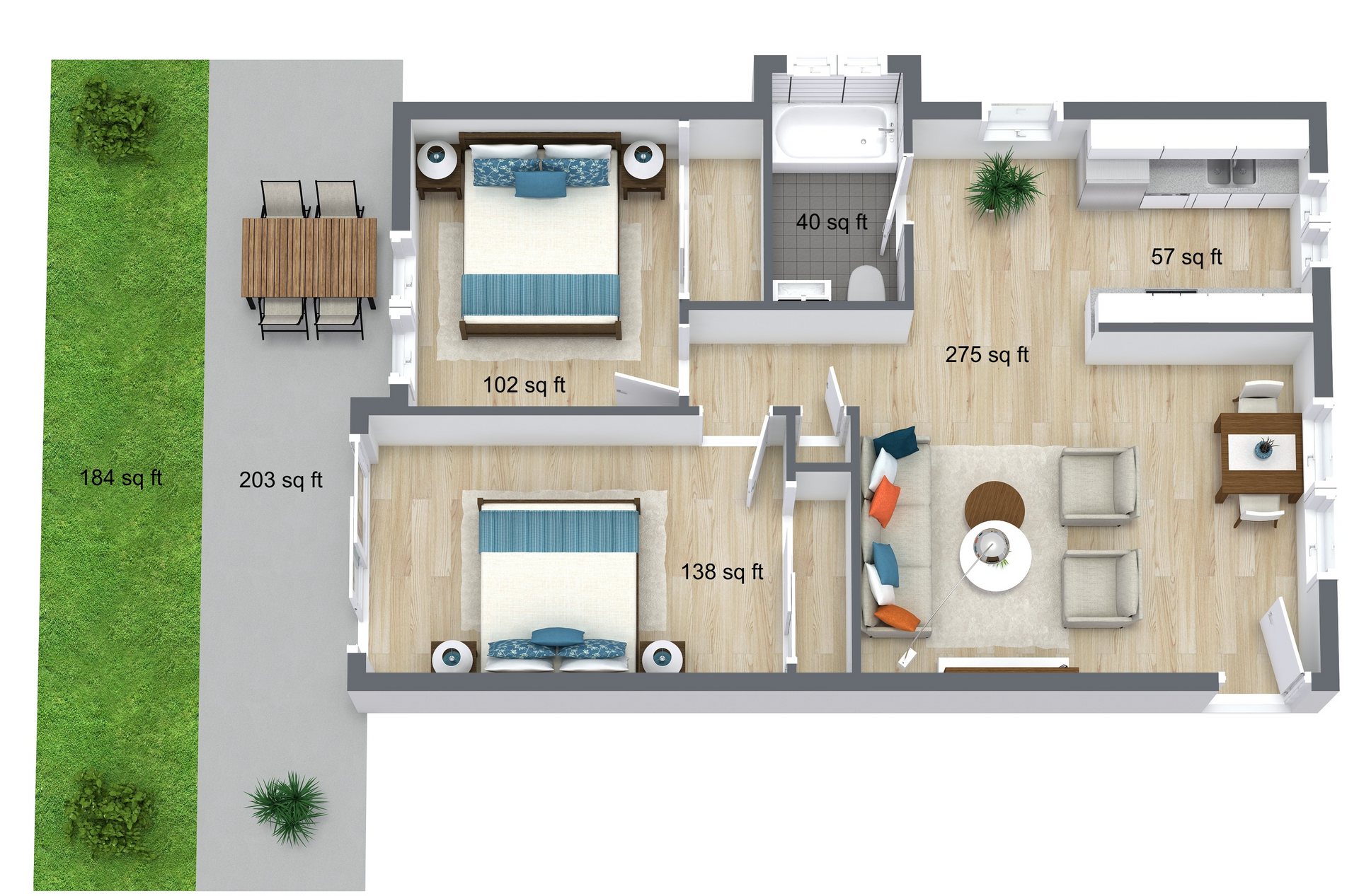 - Wood-style flooring