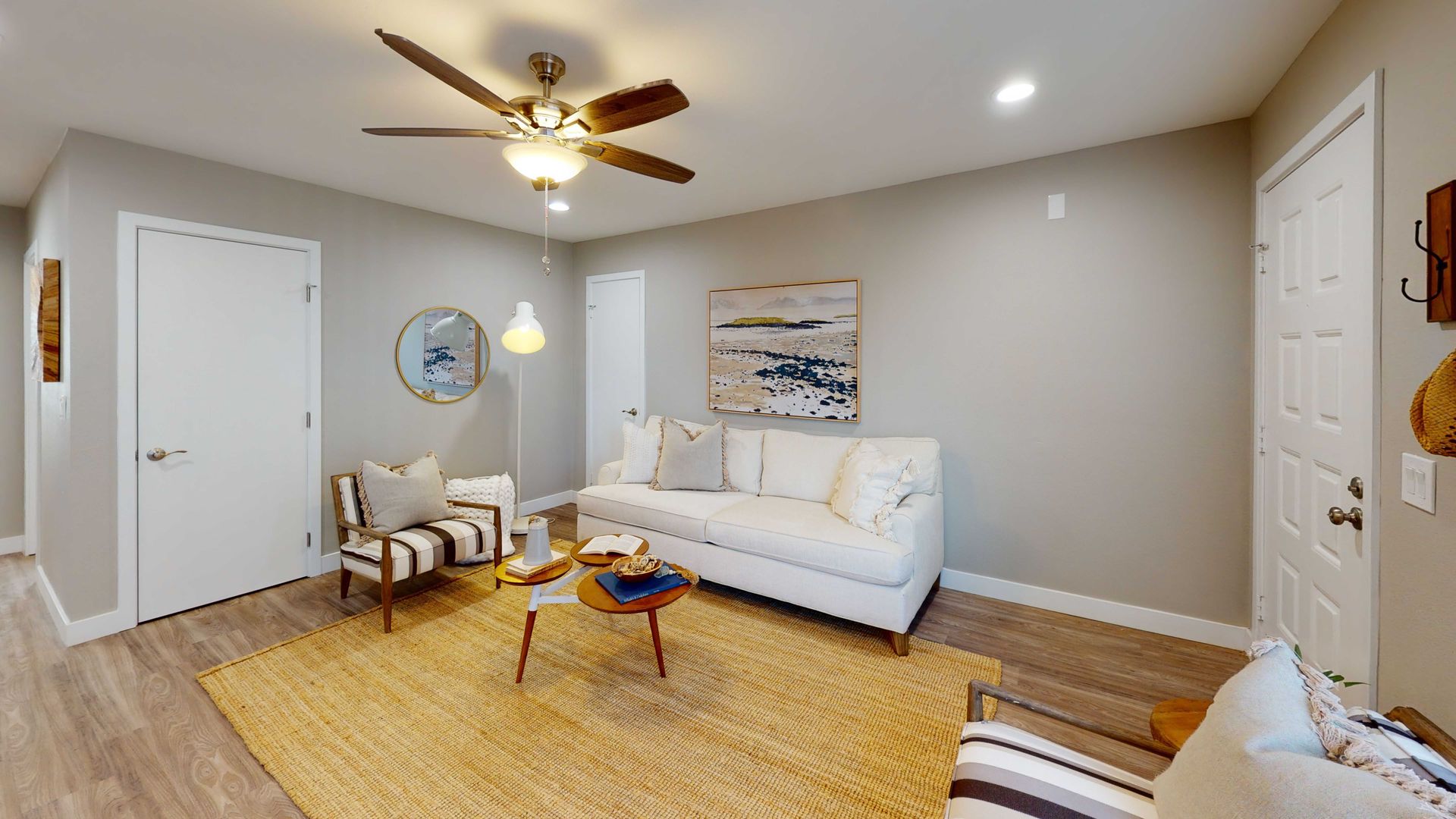 - Central A/C and ceiling fans for comfort