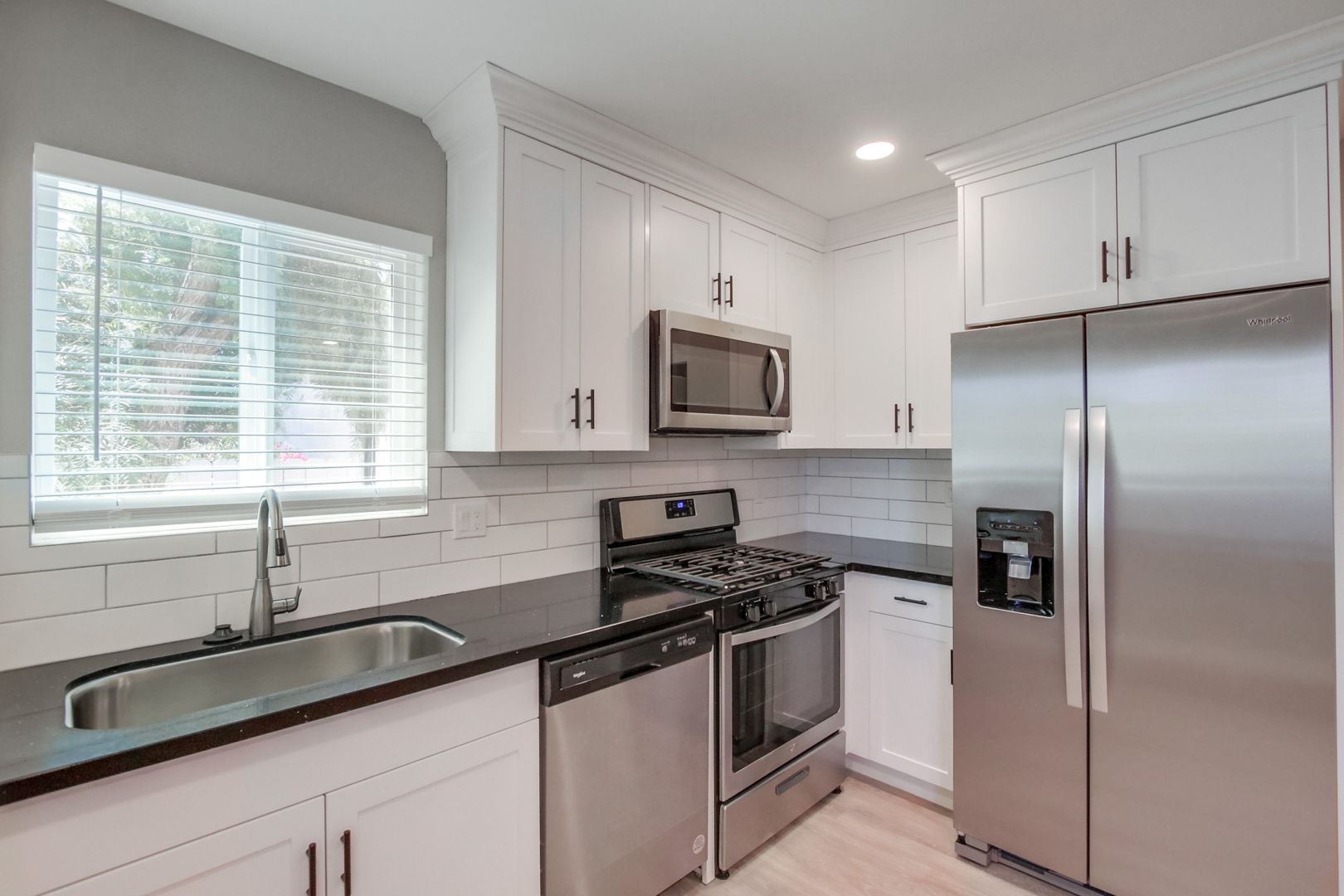 With the convenience of stair-free bungalow living, this 2-bedroom, 2-bathroom beauty is found in The Pointe development. The surrounding area west of La Mesa, is highly desirable. The home is just a short drive to Town Center and La Mesa Village. Short commute to SDSU. Exterior includes inviting patio and a breezy front porch. Cross the threshold into a warm welcome that includes wood like flooring throughout and neutral decor. Stylish kitchen glows with natural light, shaker cabinets, stainless steel appliances and quartz counters. The tranquil main-floor master bedroom includes private bath with step-in shower. Also: in-unit laundry area attached. The other bedroom is rich with ample windows, large closets and wardrobe storage.