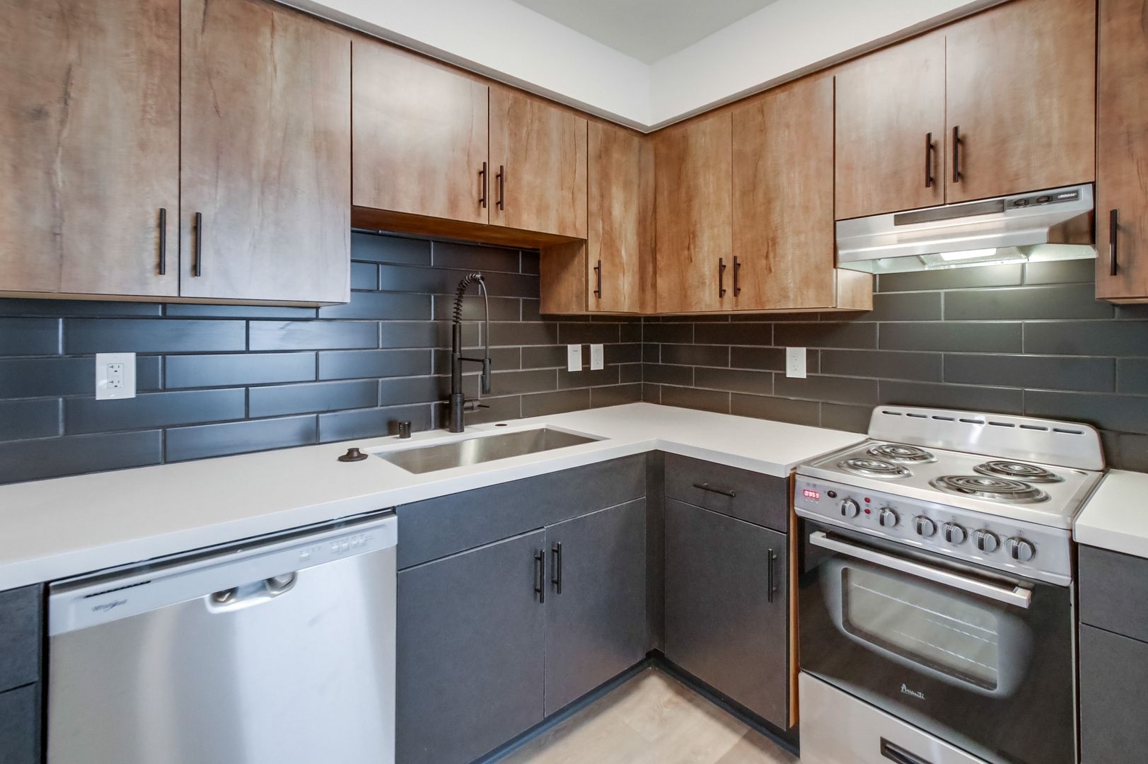 - Custom shaker-style cabinets
