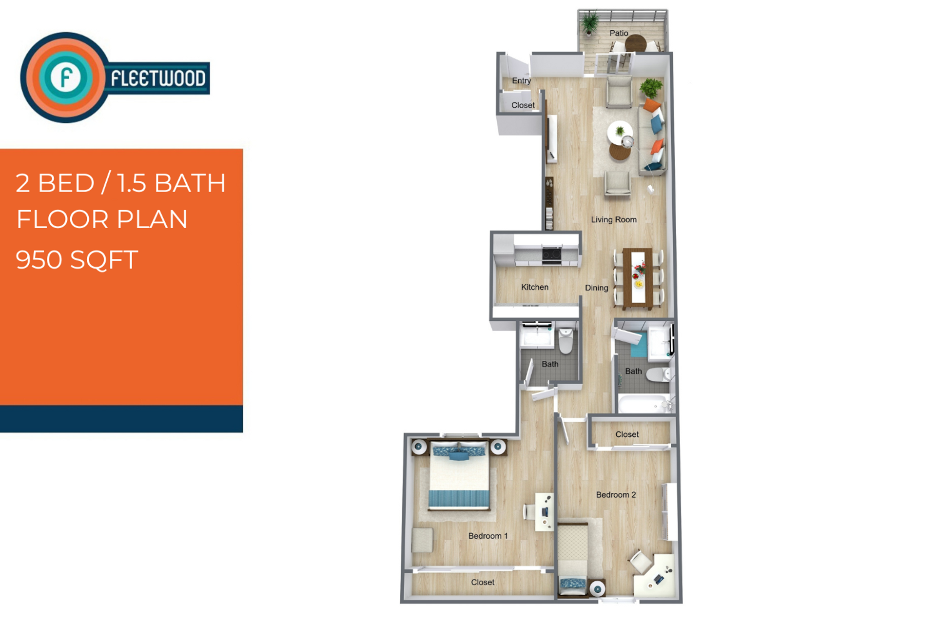 Fleetwood - RENOVATED! Luxurious apartment home with patio, A/C, and parking in resort-style community