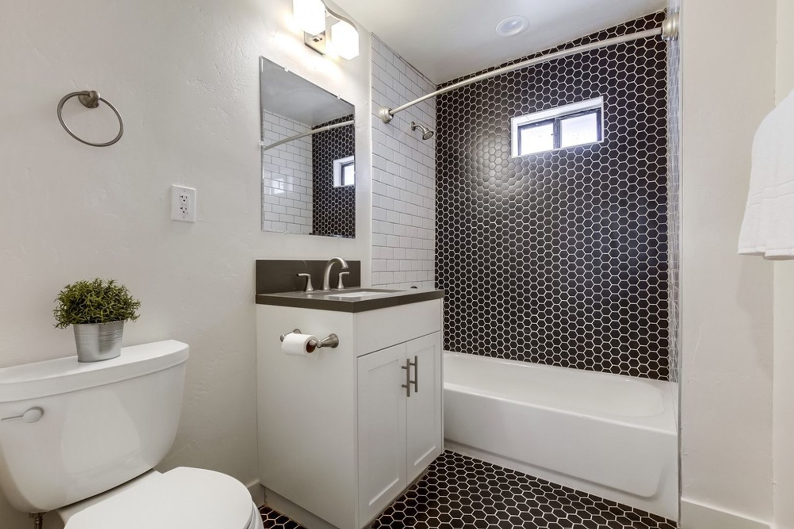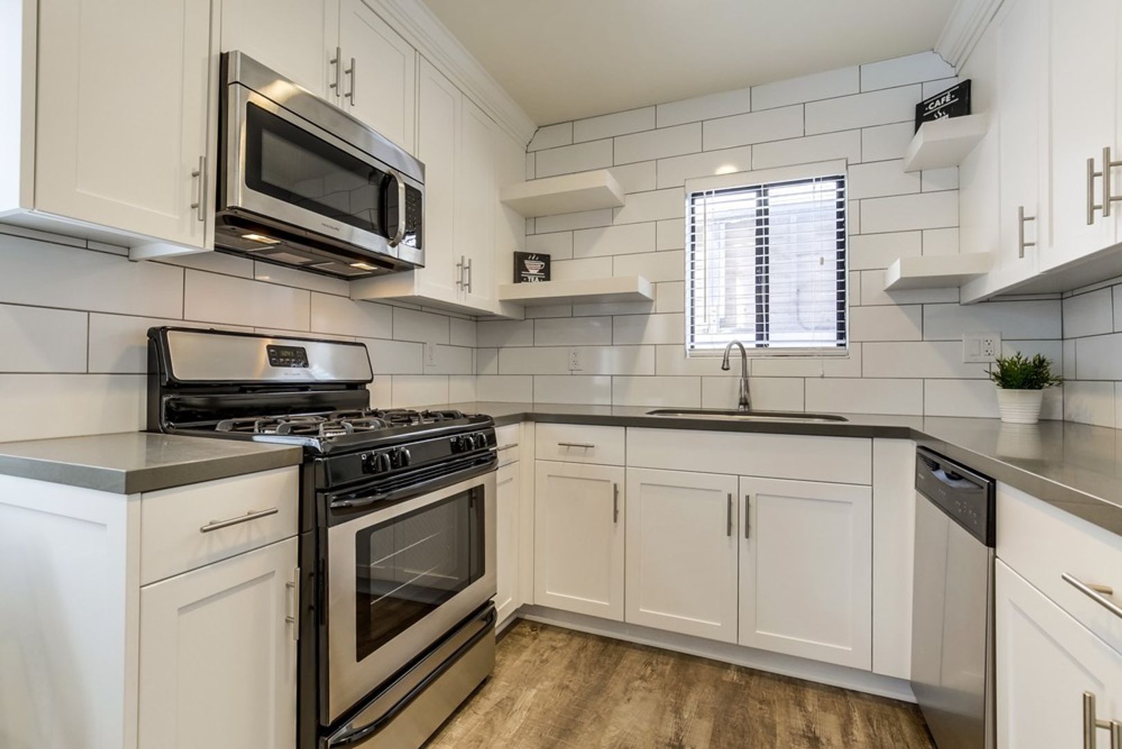- Stainless steel appliances including dishwasher and microwave