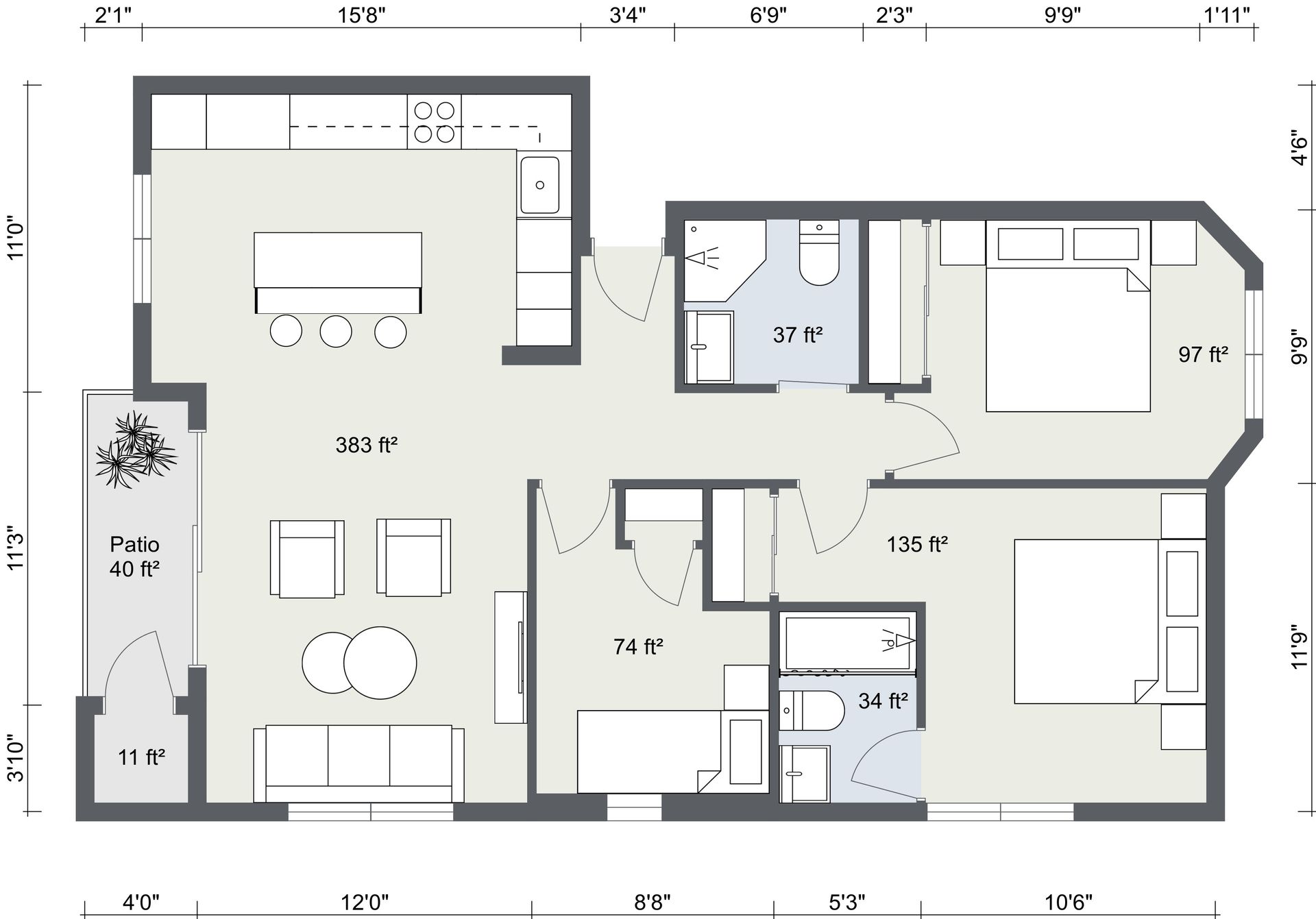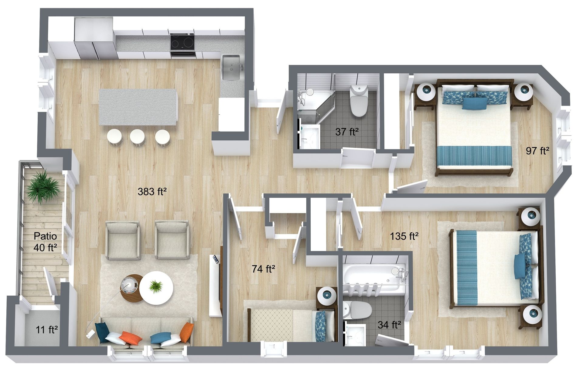 - Spacious kitchen island with ample cabinet space