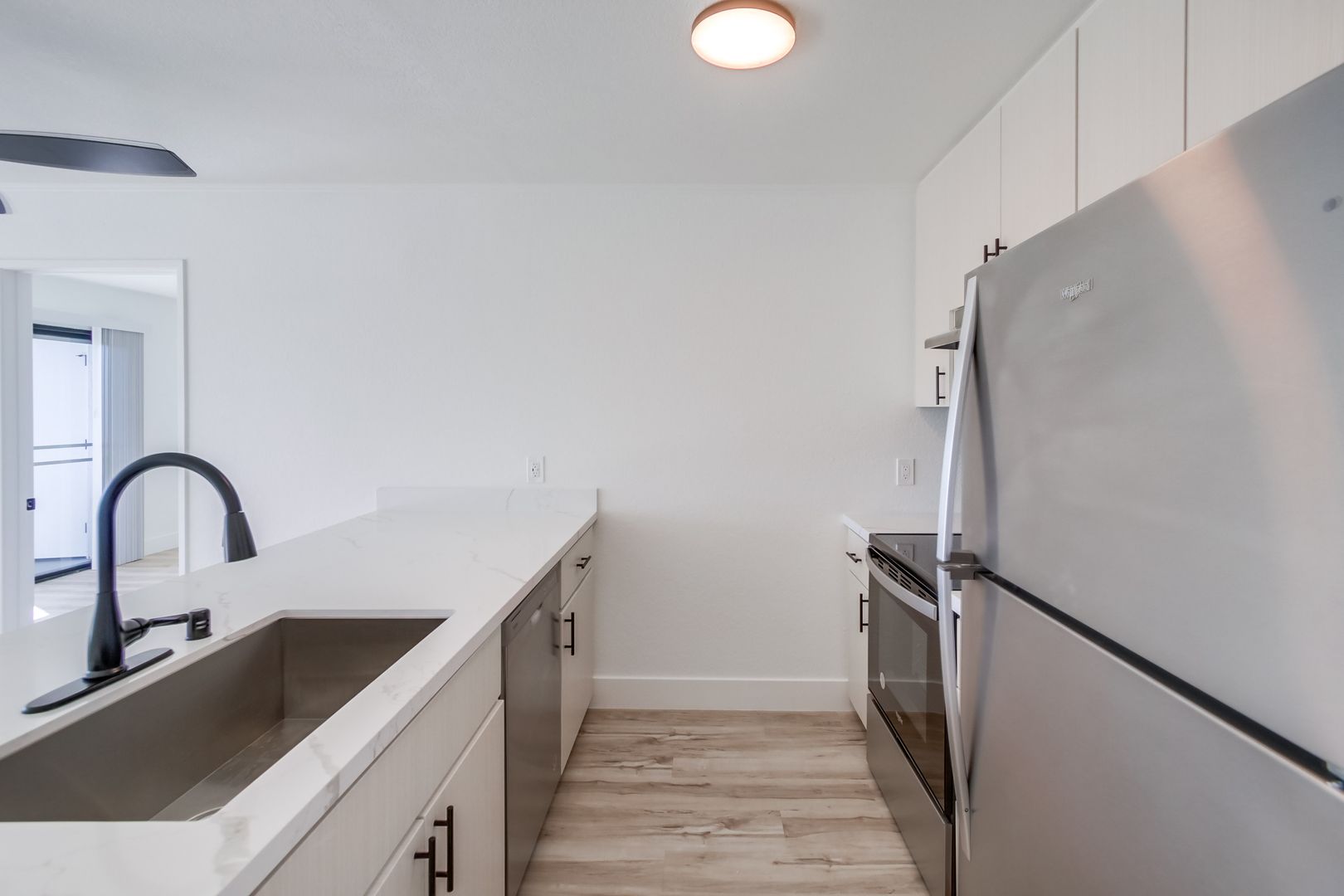 Features: Stainless steel appliances, wood vinyl flooring, private patio/balcony