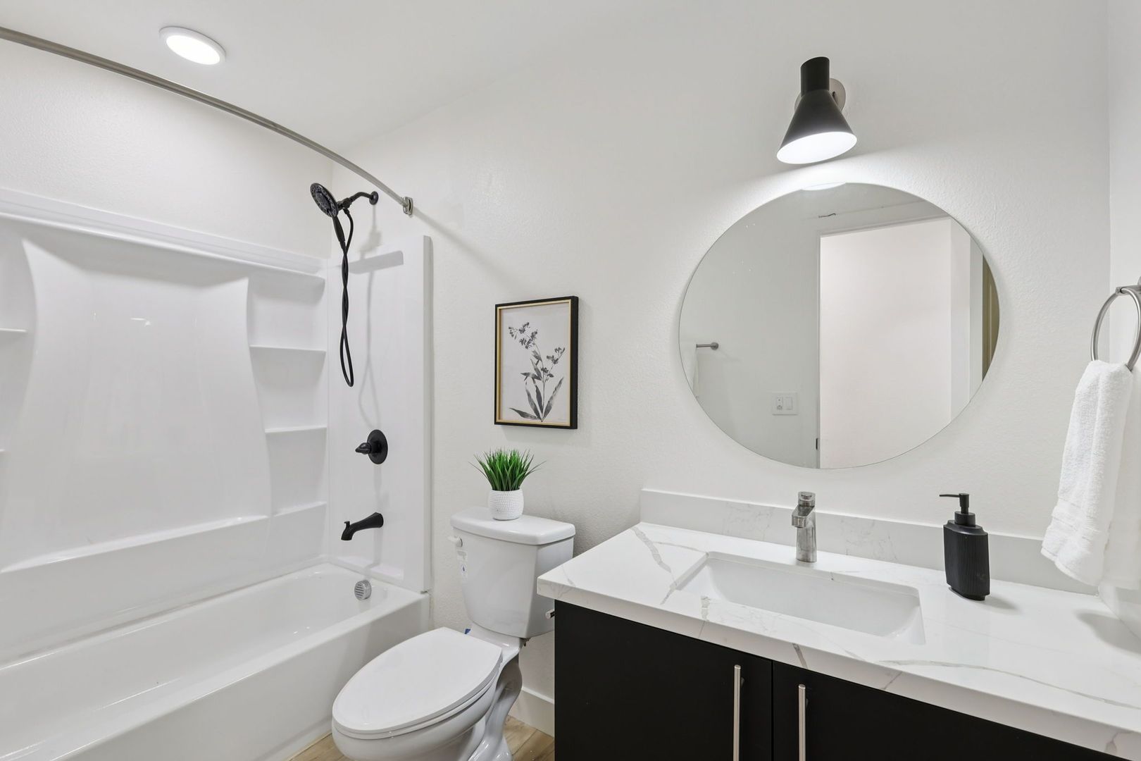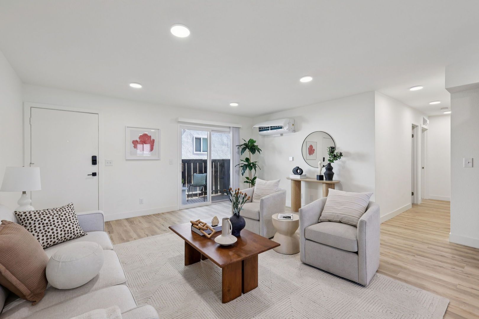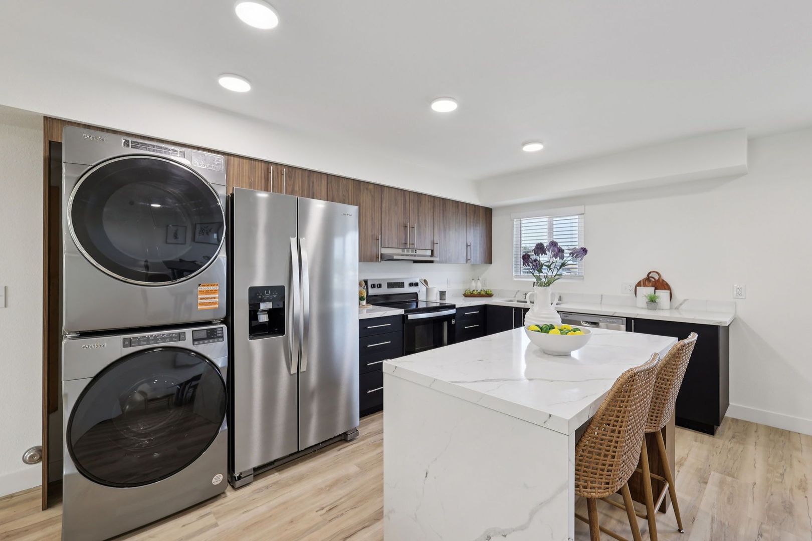 Every detail reflects modern design with practical luxury, featuring quartz countertops, luxury vinyl flooring, and energy-efficient appliances. Innovative smart home technology with keyless entry and in-unit washer and dryer enhances everyday living.