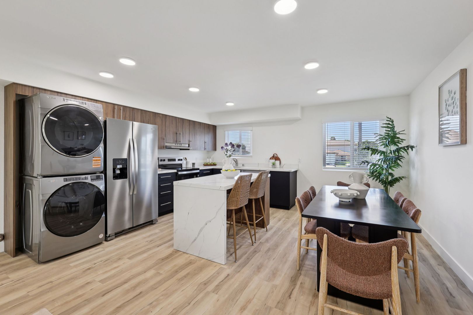 Designer finishes elevate every corner, showcasing quartz countertops, luxury vinyl flooring, and energy-efficient appliances that blend style with everyday functionality. Innovative smart-home technology with keyless entry enhances both convenience and security, while the in-unit washer and dryer add ease to daily routines, creating a home that feels thoughtfully designed for modern living.