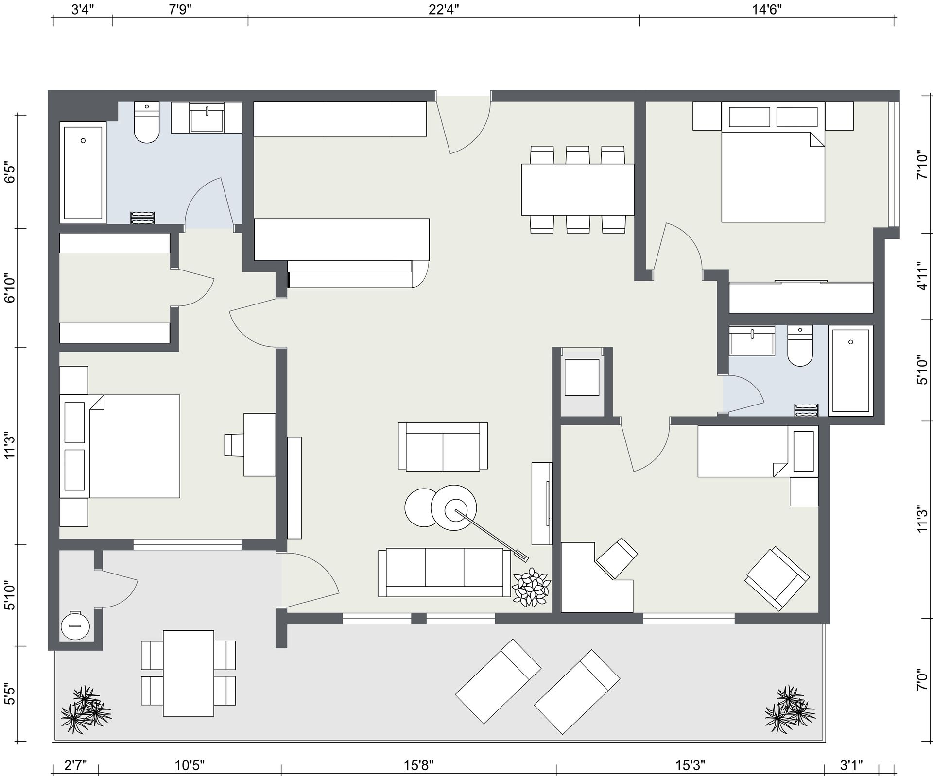 - Open concept living space