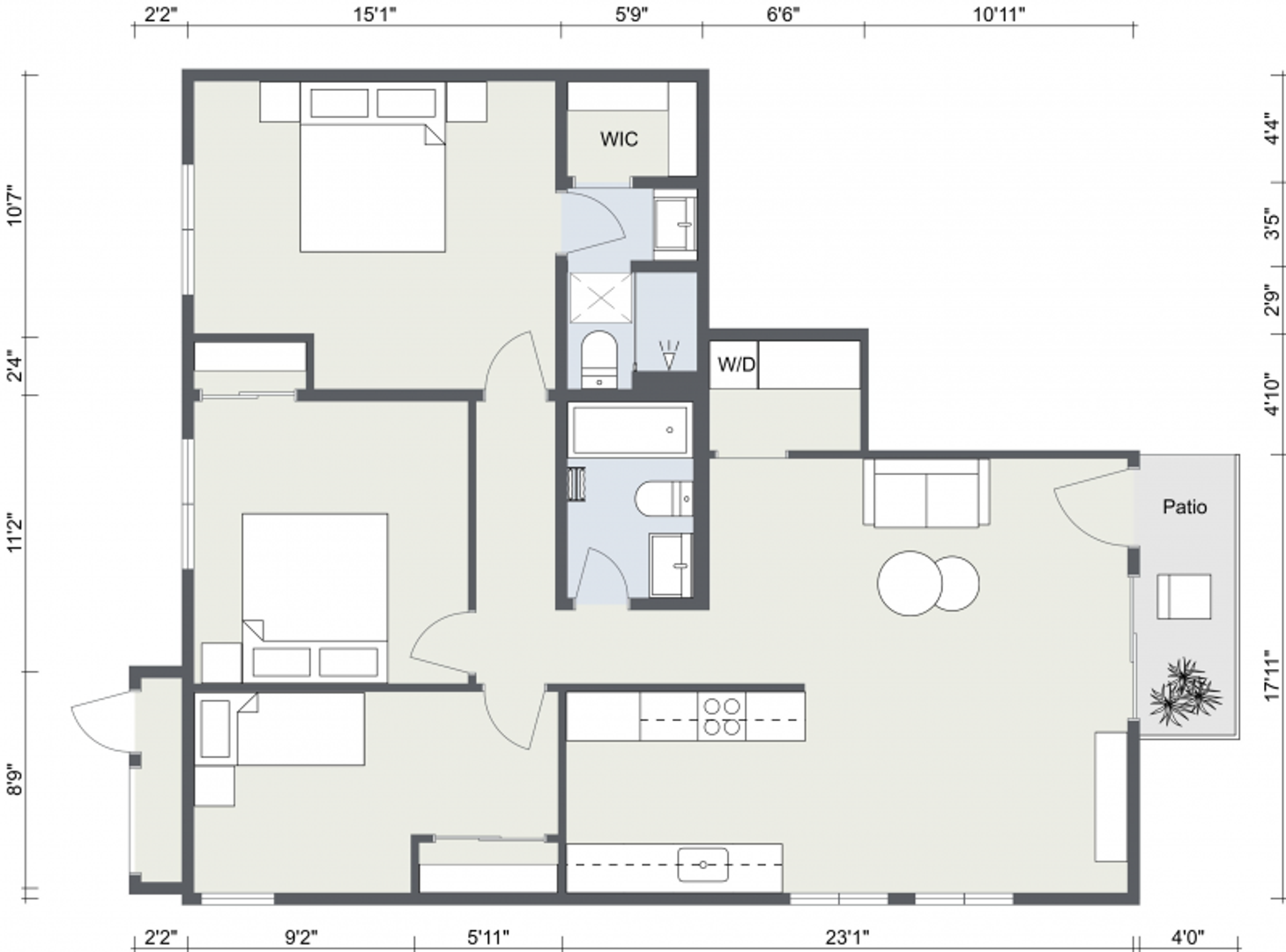 - In-unit full sized washer/dryer